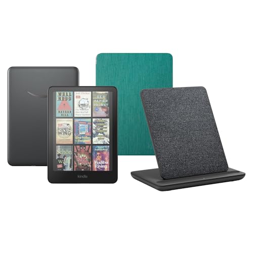 Kindle Colorsoft Signature Edition (32 GB) without ads, Jade Amazon Clear Back Cover and a Made for Amazon Wireless Charging Dock