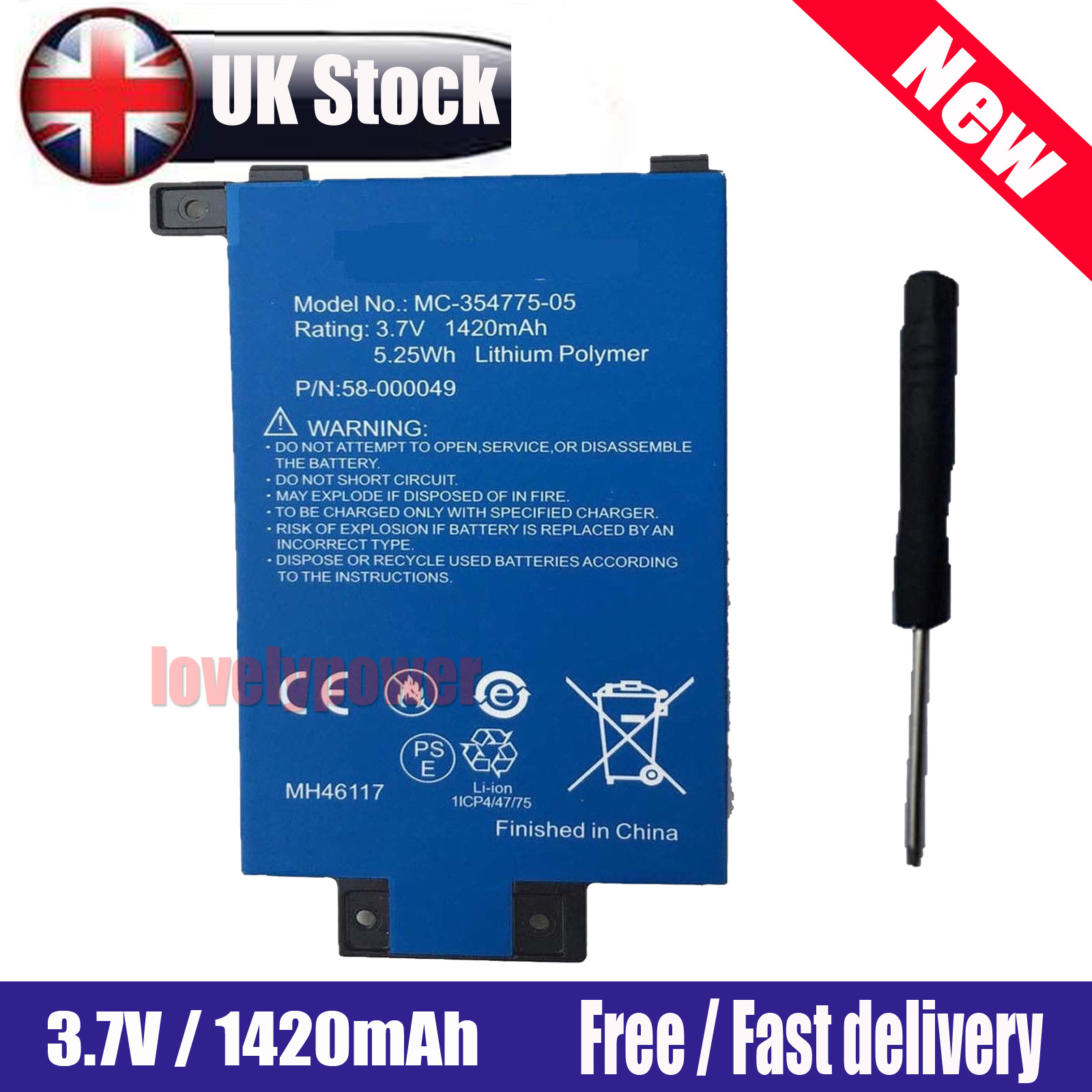 UK Battery for Amazon Kindle Paperwhite,58-000008 MC-354775-03 3.7V 1420mAh