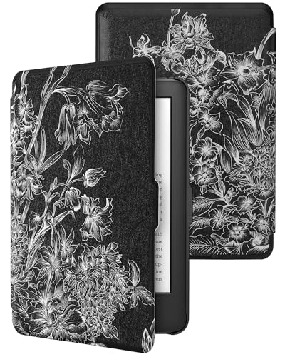 WALNEW Case for Kindle Paperwhite 5th/6th Generation,Ultra Light&Thinnest Premium Slim Cover for Amazon Kindle Paperwhite 2012/2013/2015 with Magnetic Auto Sleep/Wake Function (Black Flower)