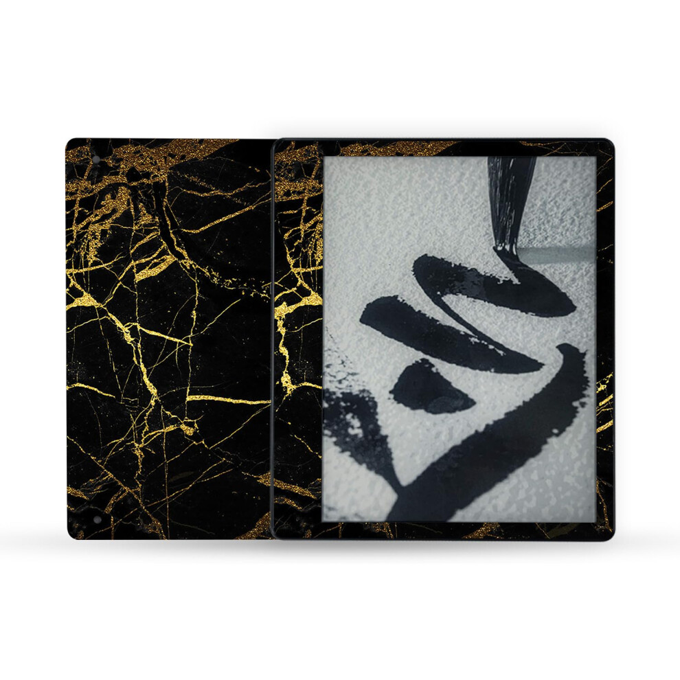 MightySkins Skin Compatible with Amazon Kindle Scribe (2022) Full Wrap - Black Gold Marble | Protective and Unique Vinyl Decal wrap Cover | Easy to A
