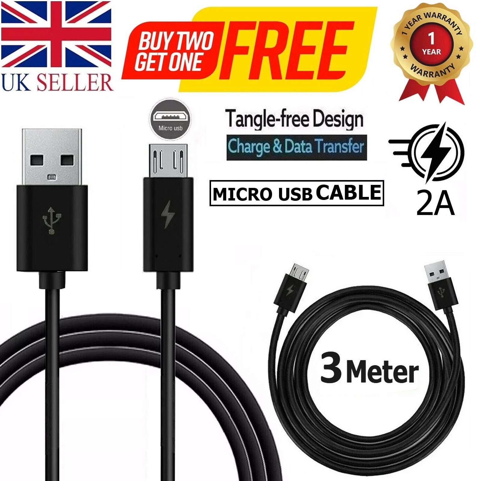3 Meter Long Micro USB Power Cable Lead For Amazon Fire TV Stick All Generation