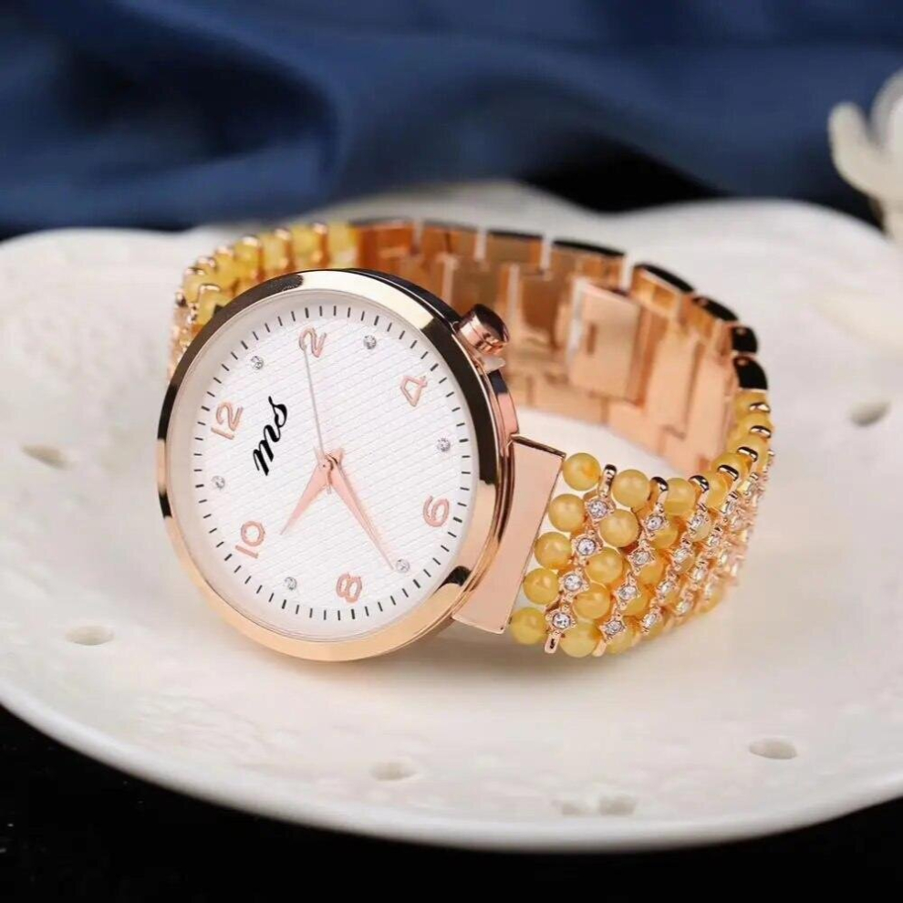 natural amber stone beads bracelet & waterproof watch DIY jewelry for woman for for beach !