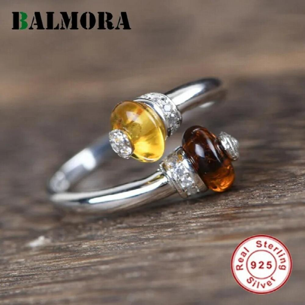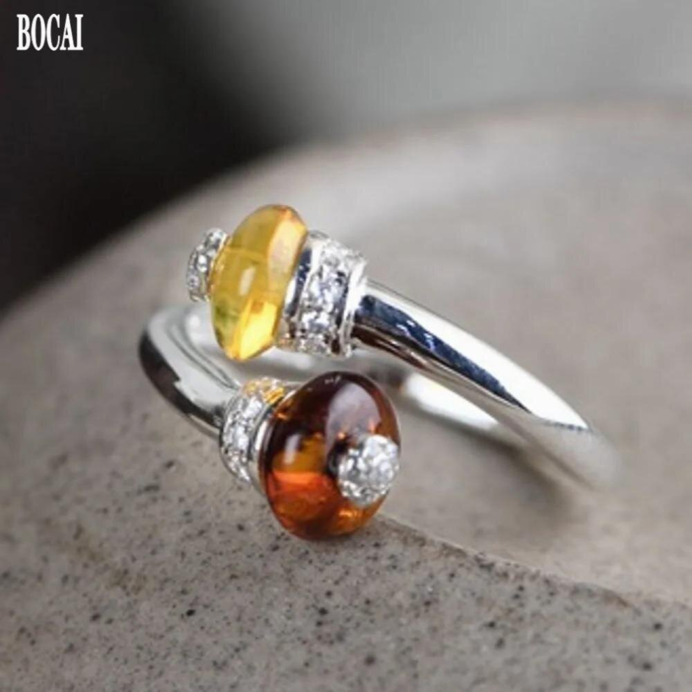 100% 925 Sterling Silver Amber Beads Ring For Women Adjustable Open Ring Vintage Finger Ring Daily Jewelry Gift