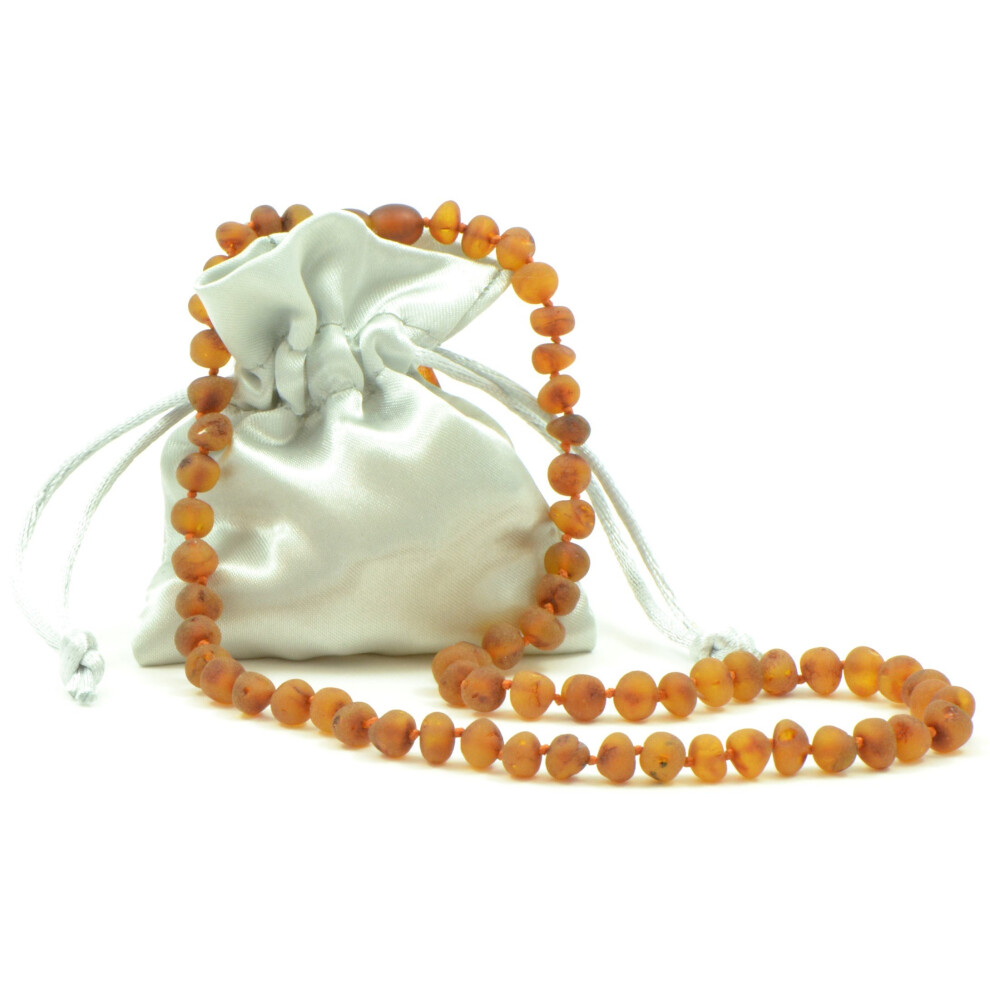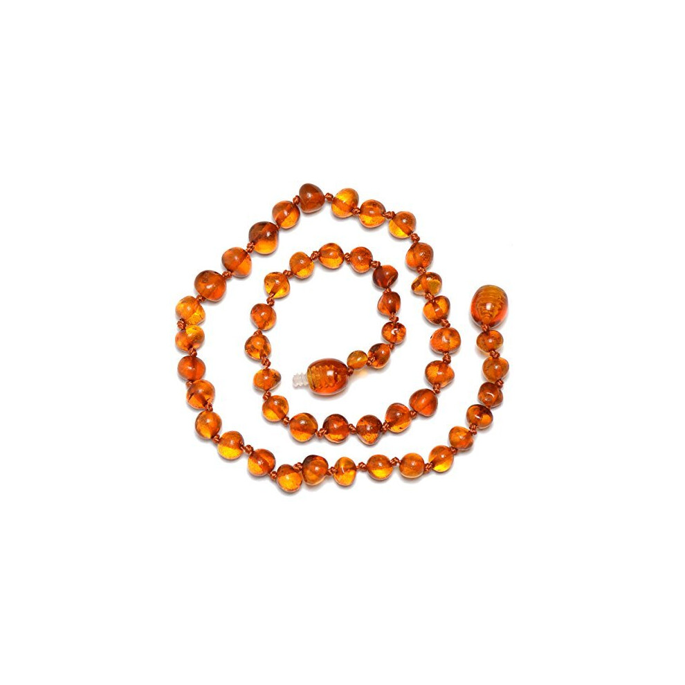 AmberJewelry Raw Baltic Amber Necklaces for Adults - 21.6 inches (55 cm) - Cognac Color Amber Beads Necklace - Handmade Organic Unpolished/Raw Authent