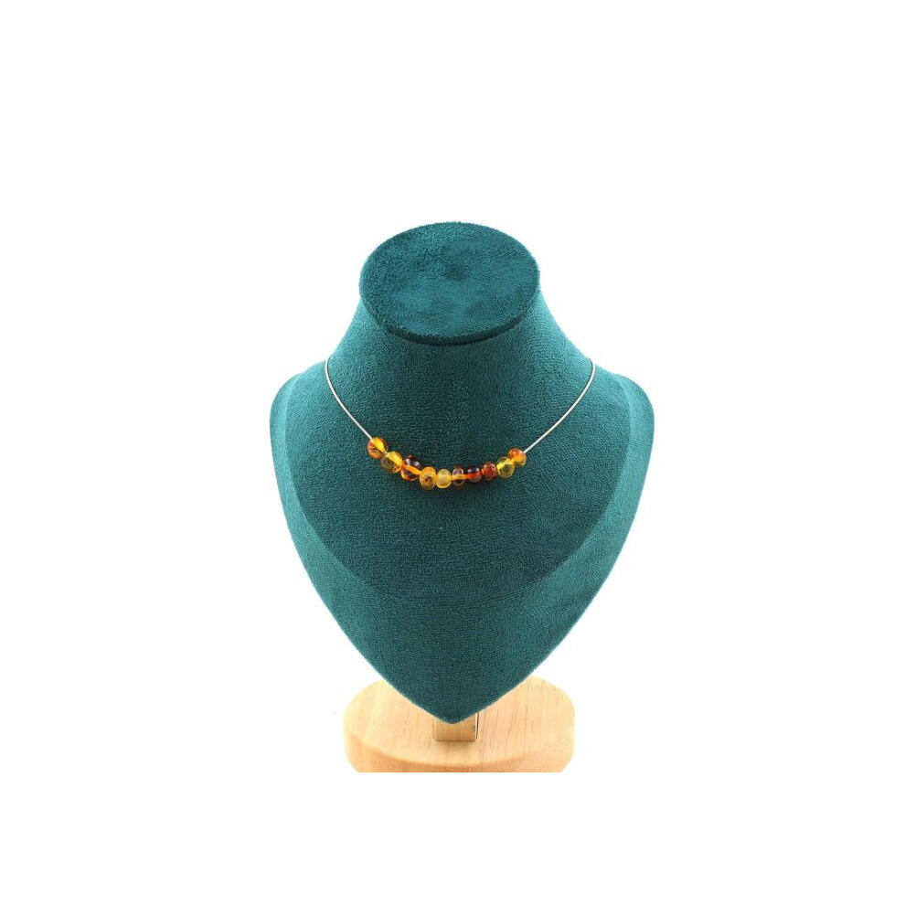 Stones and Minerals. Necklace with 10 real Amber beads from the Baltic Sea. Steel chain Necklace for women, men. Personal size