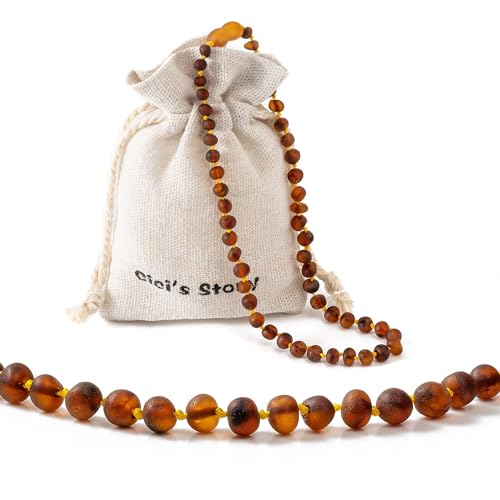 Cici's Story Baltic Amber Necklace(Unisex)(Cognac Raw) - 33cm Long - 100% Natural & Handmade Amber Beads Jewelry