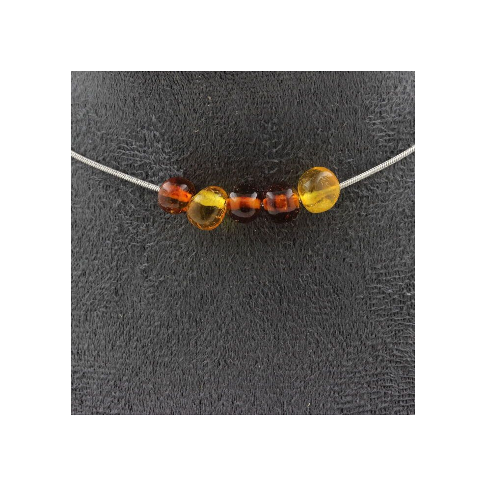 Necklace - A Bijoux - Genuine amber - 5 beads - Stainless steel - Length 45 cm