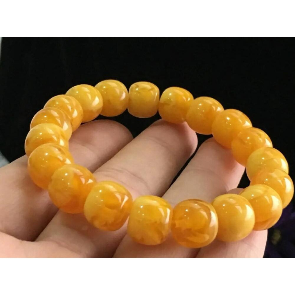 12mm Natural Mexican Yellow Amber Beeswax Beads Bracelet