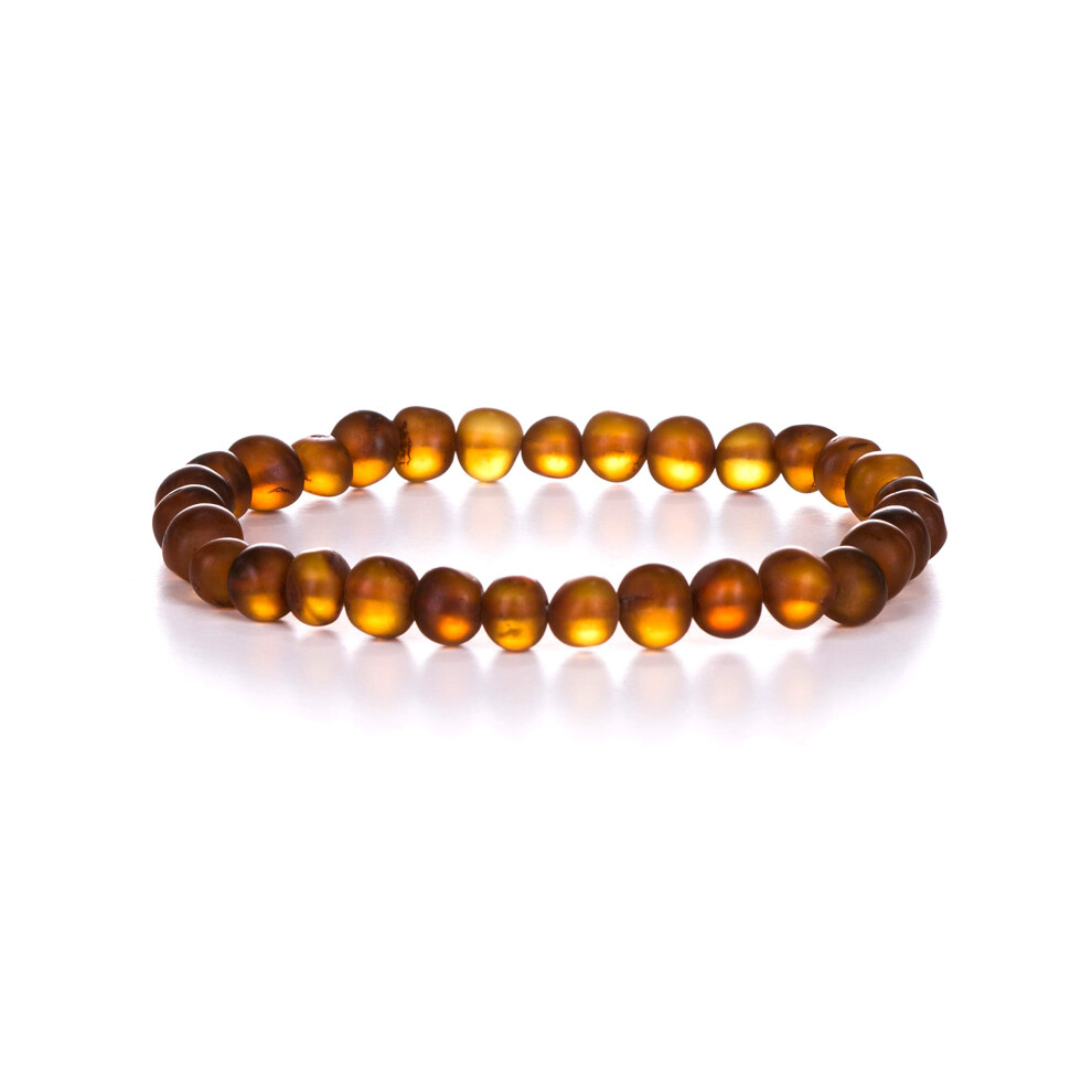 Genuine Amber Unpolished Baroque Bracelet - Natural Amber Jewelry - Baltic Sea Amber Beads Hand-Assembled in Europe (22 cm, Dark Cognac)