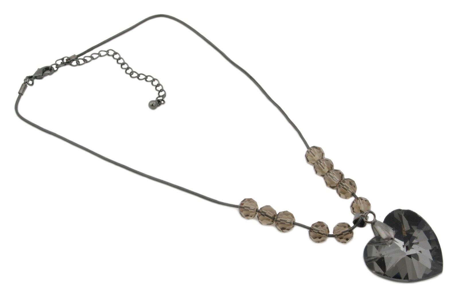 Zest Pewter Grey Chain Necklace with Faceted Beads & Heart Pendant Amber