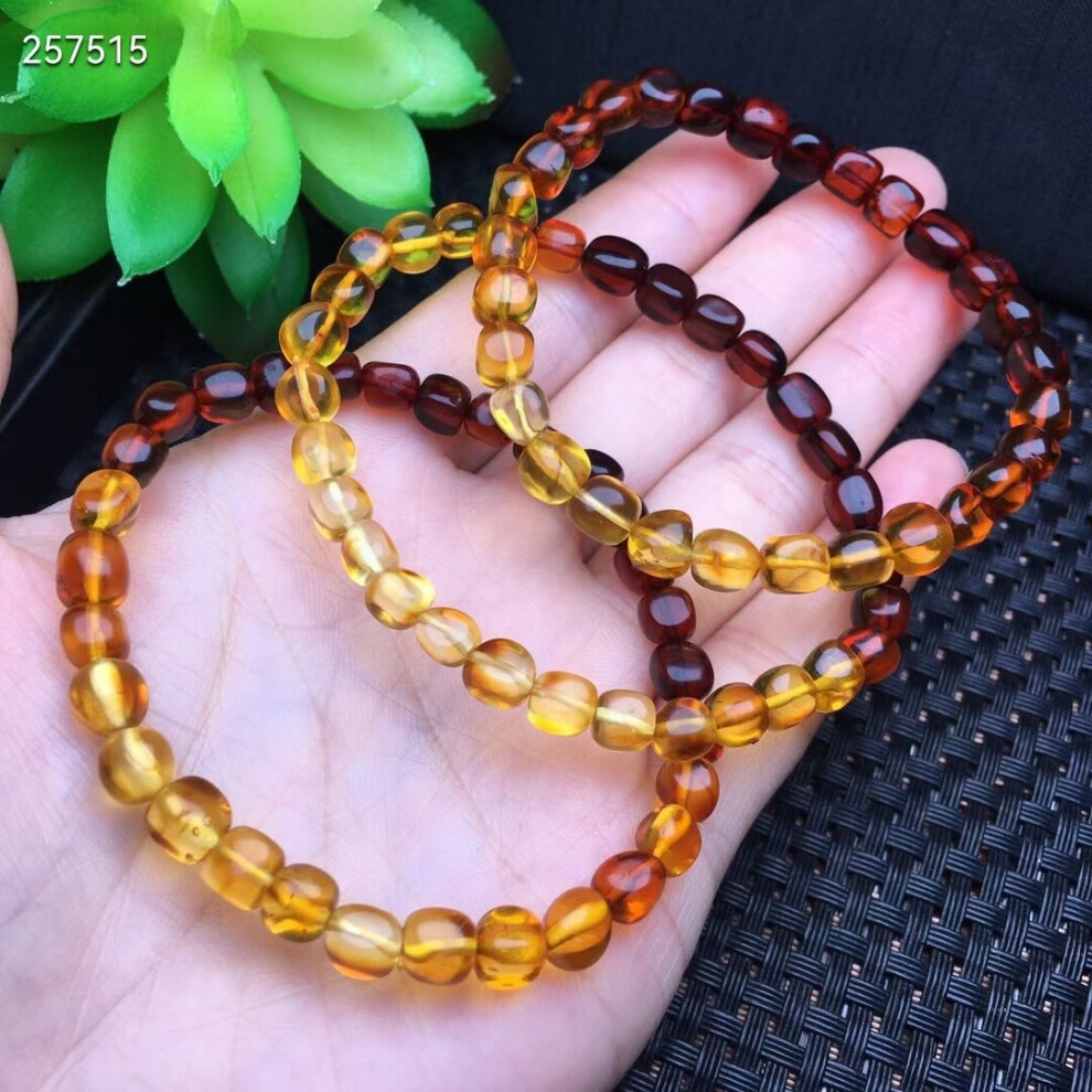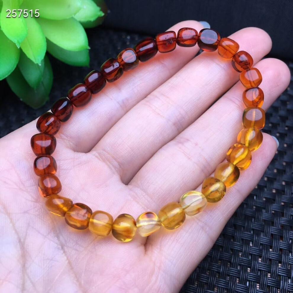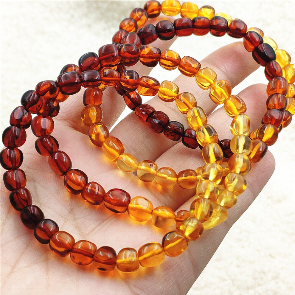 Natural Yellow Amber Beads Bracelet Red Amber Women Men 6mm Rare Healing Stretch Jewelry AAAAA