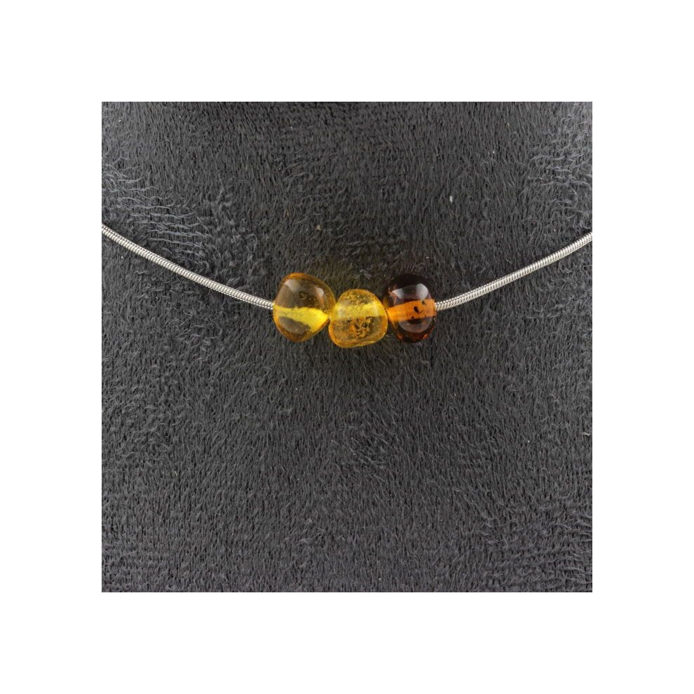 Stones and Minerals. Necklace 3 real Amber beads from the Baltic Sea. Steel chain Necklace for women, men. Custom size