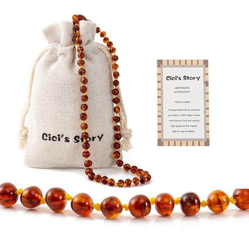 Cici's Story Baltic Amber Necklace(Unisex)(Cognac) - 33cm Long - 100% Natural & Handmade Amber Beads Jewelry