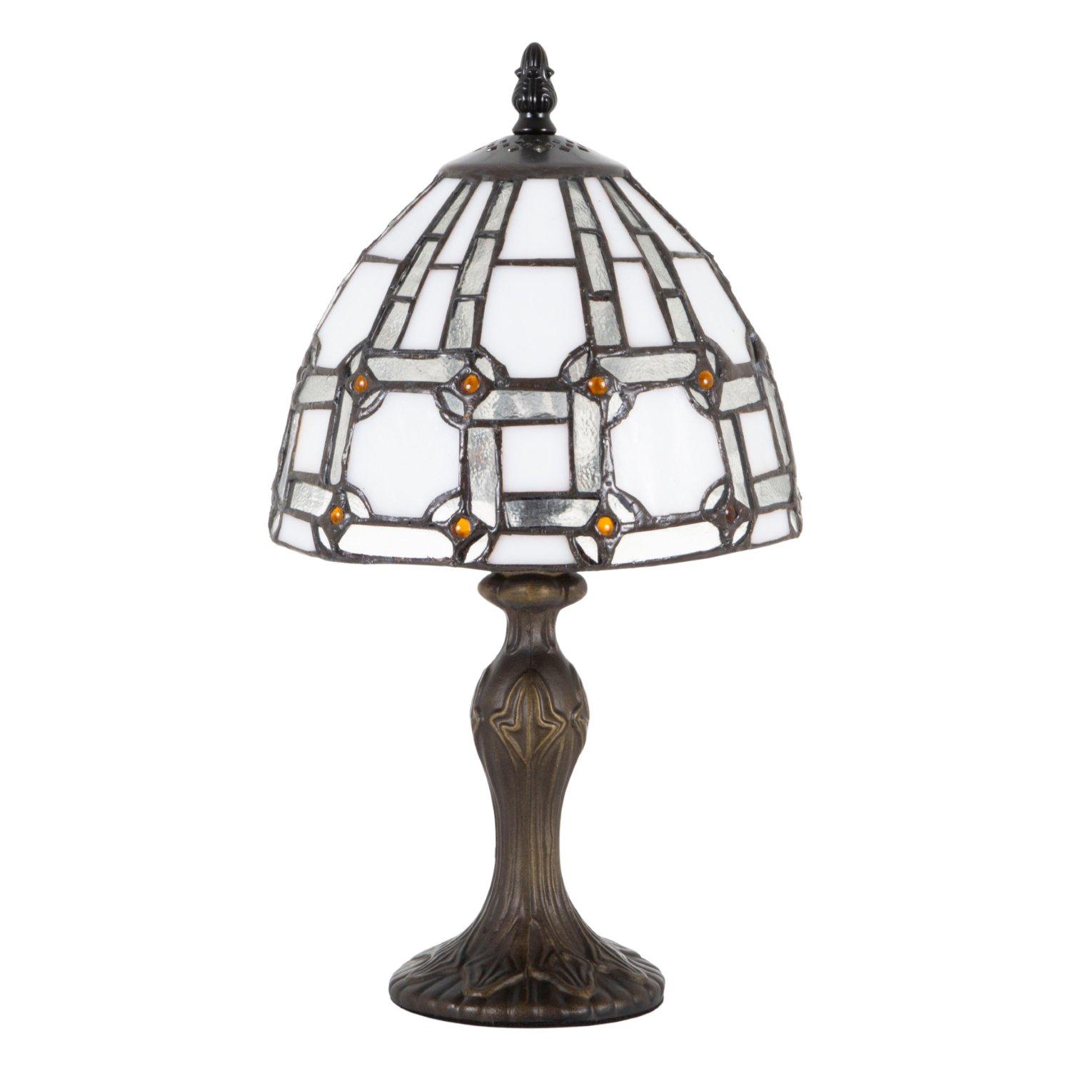 Traditional Stained Glass 12in Tiffany Lamp with Amber Beads by Happy Homewares