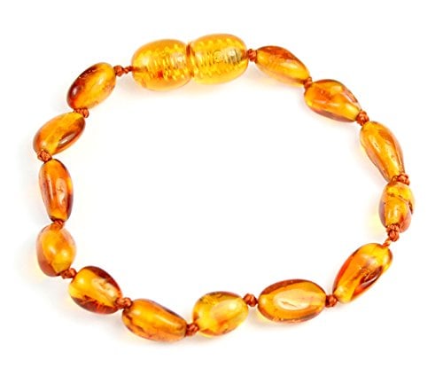 SilverAmber New Baltic Amber Anklet Bracelet Cognac - Handmade 100% Genuine Amber Bean Beads - Premium Quality - Size 15 CM