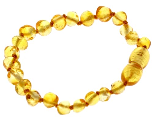 SilverAmber Jewellery UK New Baltic Amber Anklet Bracelet Honey - Handmade 100% Genuine Amber Polished Beads - Premium Quality - Sizes 12-27 CM - (Size: 13 CM)
