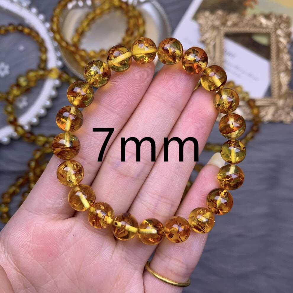 HXZASFG 7mm Genuine Natural Yellow Amber Crystal Beads Bracelet for Blessing and Healing