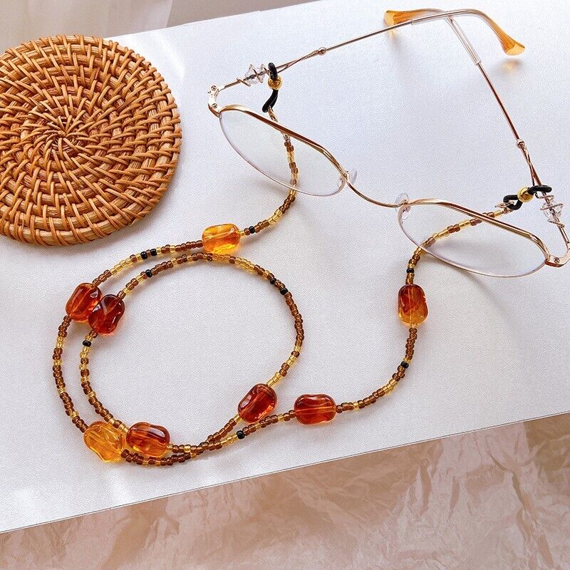 Amber Crystal Beads Sun glasses Neck Chain Cord Lanyard Retainer Spectacles