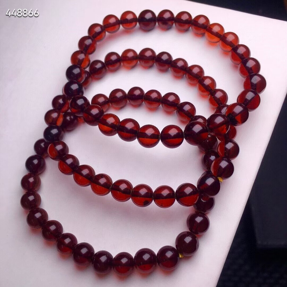 Natural Blood Red Amber Clear Beads Bracelet 7mm Crystal Stretch Women Men Round Beads Bracelet Jewelry Drop AAAAAA