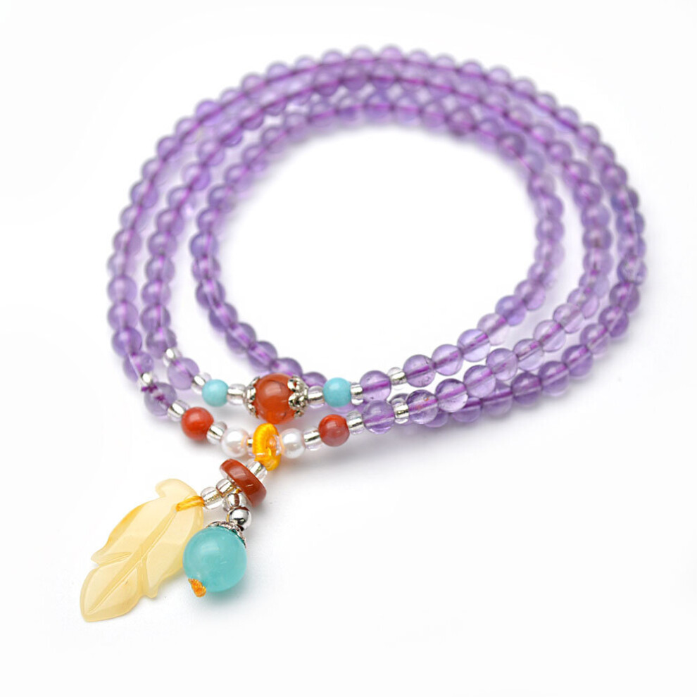 Rows Natural Amethyst Round Beads Amber Charm Woman Bracelets Jewelrys Gift