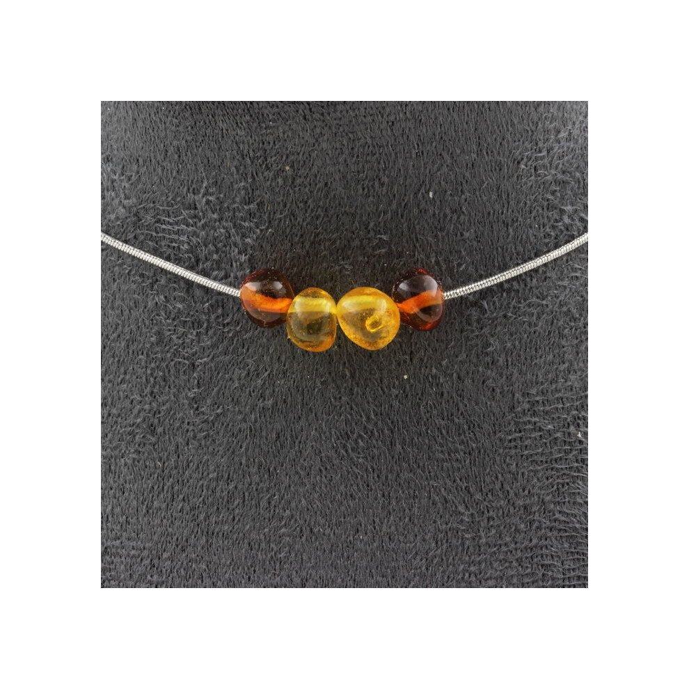 Necklace - A Bijoux - Genuine amber - 4 beads - Stainless steel - Length 45 cm