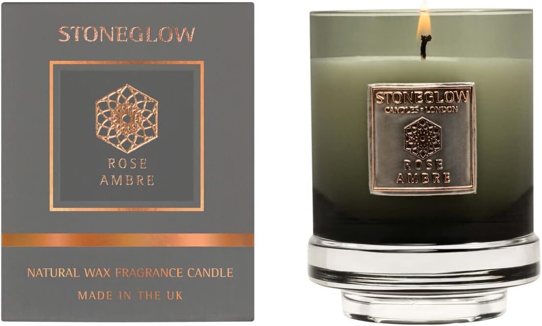 Stoneglow Metallique Collection - Rose Ambre 250 Grams Scented Candle - Grey