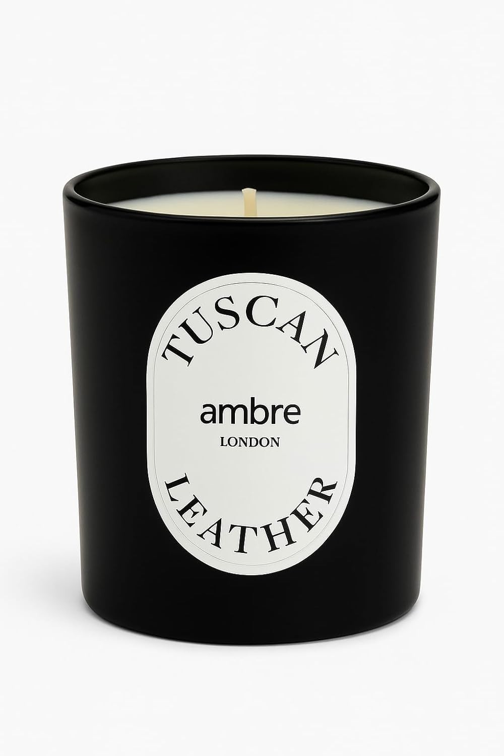Tuscan Leather Scented Candle - by Ambre London - 100% Organic Natural Soy Wax,