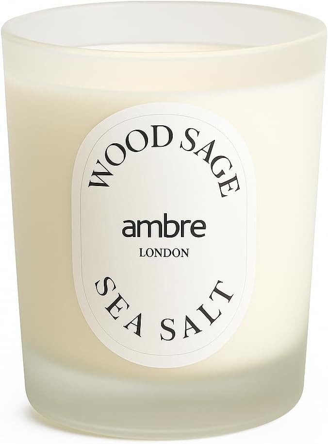 Luxury Woodsage & Sea Salt Scented Candle – Ambre London, 100% Soy Wax, Hand-