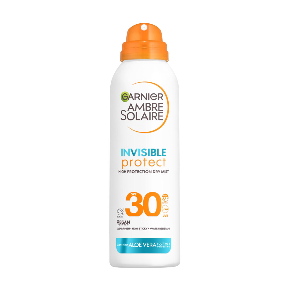 Garnier Ambre Solaire Invisble Protect Dry Mist SPF 30, fast absorbing, high UVA & UVB protection, water resistant, invisible finish, non-sticky suns