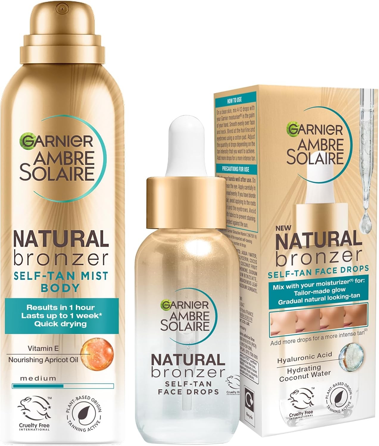Garnier Ambre Solaire Natural Bronzer Duo: Tan Drops for Face (30ml) & Tan Mist