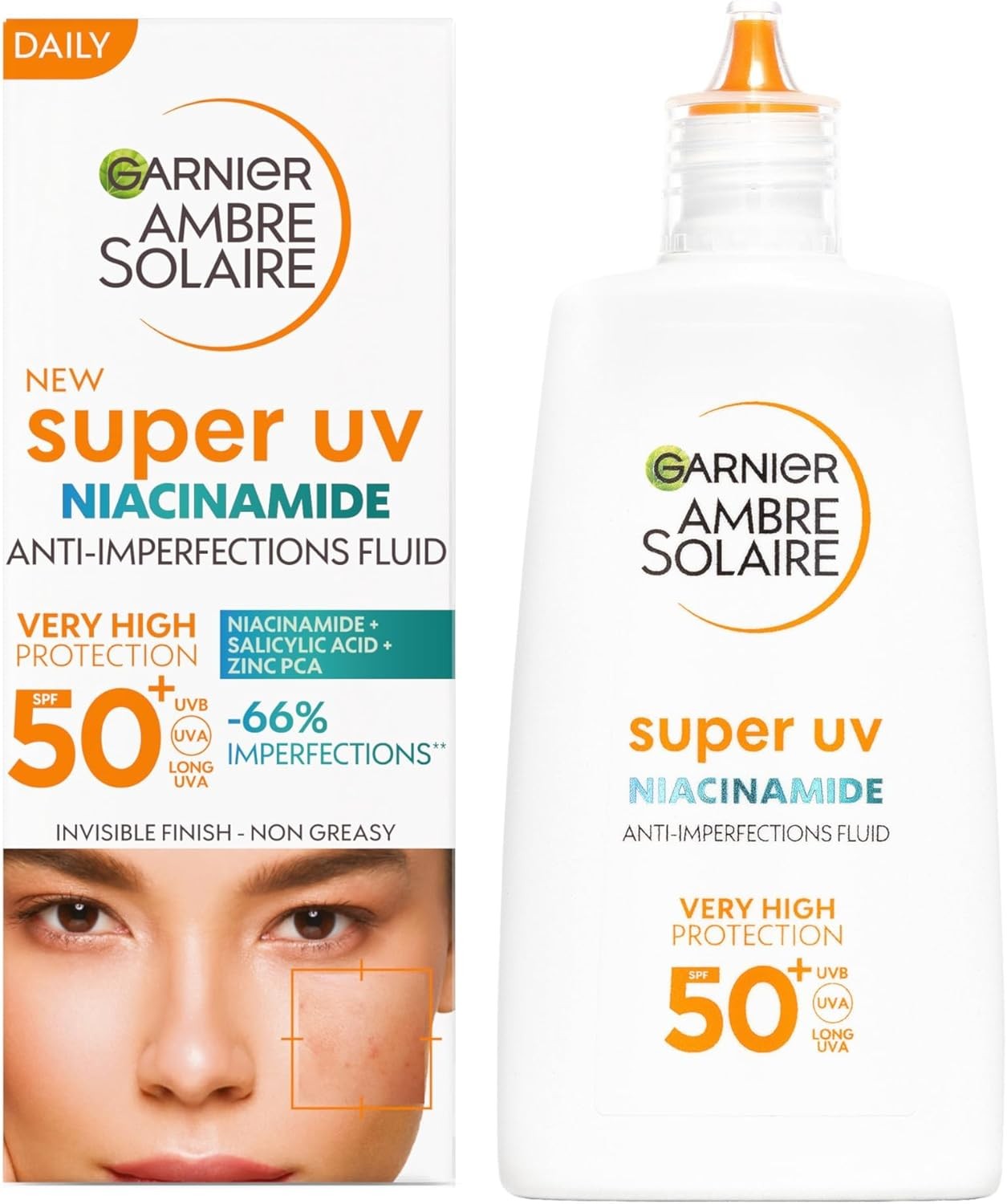 Garnier Ambre Solaire Face SPF 50+, Super Daily UV Niacinamide Facial Fluid, Ve