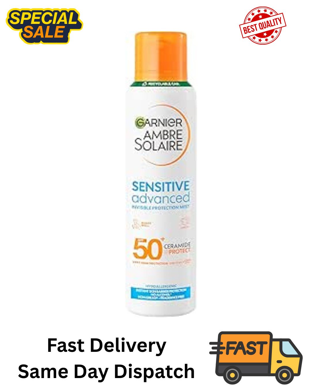 Garnier Ambre Solaire SPF50+ Sensitive Dry Mist Sun Cream Spray 150ml UVA UVB