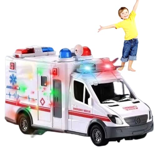 Ambulance Toy with Lights and Sounds and Movement Mystery Bump & Go Ambulance First Aid with Lights Sound Ambulance for Children Ambulance with Motion Sirens and Led Headlights Ambulance Large