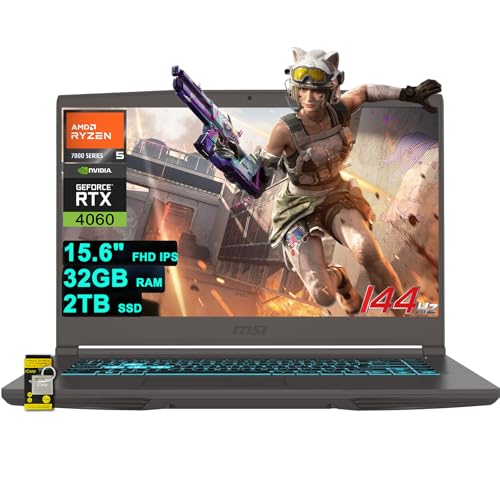 MSI Thin A15 Gaming Laptop 15.6" FHD Thin Bezel IPS 144Hz AMD 6-core Ryzen 5 7535HS 32GB DDR5 2TB SSD GeForce RTX 4060 (Up to 233 AI Tops) Backlit USB-C Wi-Fi6E Win11 w/ICP Hub