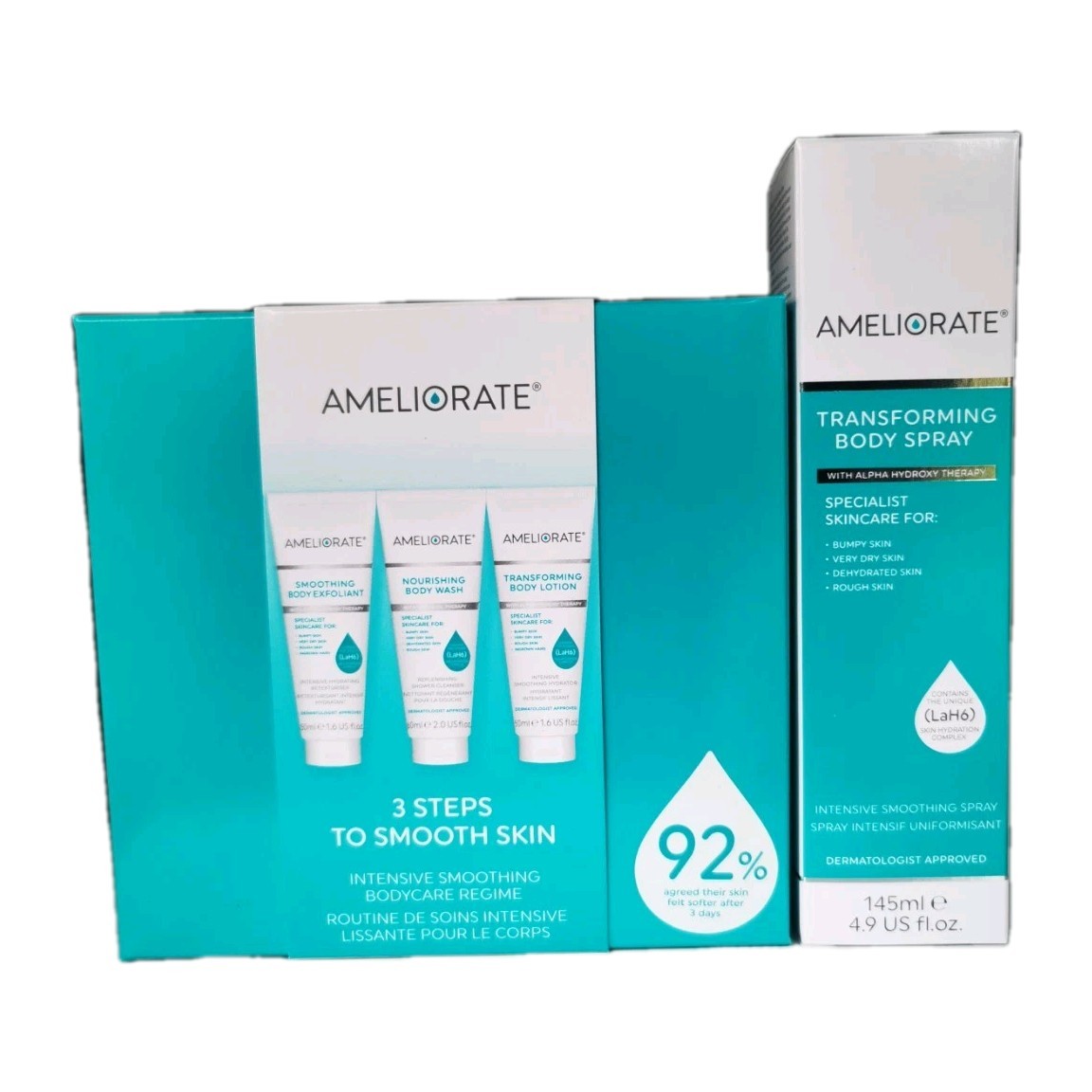 AMELIORATE HYDRATING 3 STEPS TO SMOOTH SKIN AND TRANSFORMING BODY SPRAY SET OF 2