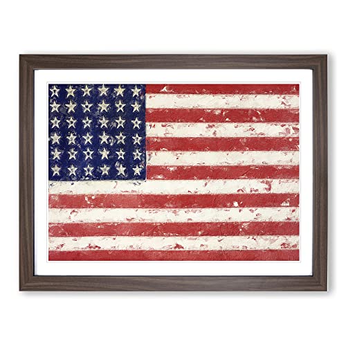 Flag Of The United States Of America Modern Framed Wall Art Print, Ready to Hang Picture for Living Room Bedroom Home Office Décor, Walnut A2 (64 x 46 cm)