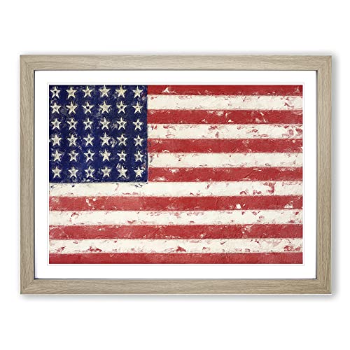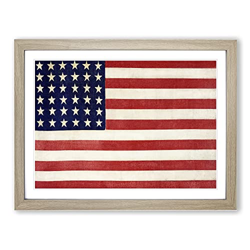 Flag Of The United States Of America Modern Framed Wall Art Print, Ready to Hang Picture for Living Room Bedroom Home Office Décor, Oak A2 (64 x 46 cm)