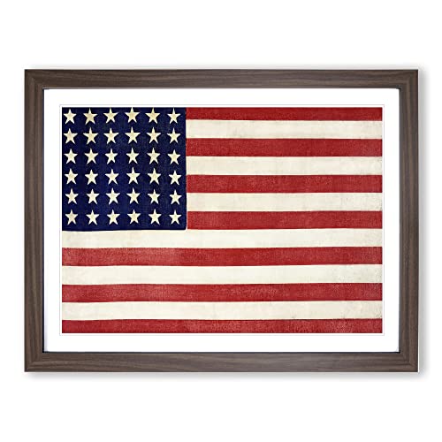 Thirty Six Star Flag Of The United States Of America Modern Art Framed Wall Art Print, Ready to Hang Picture for Living Room Bedroom Home Office Décor, Walnut A4 (34 x 25 cm)