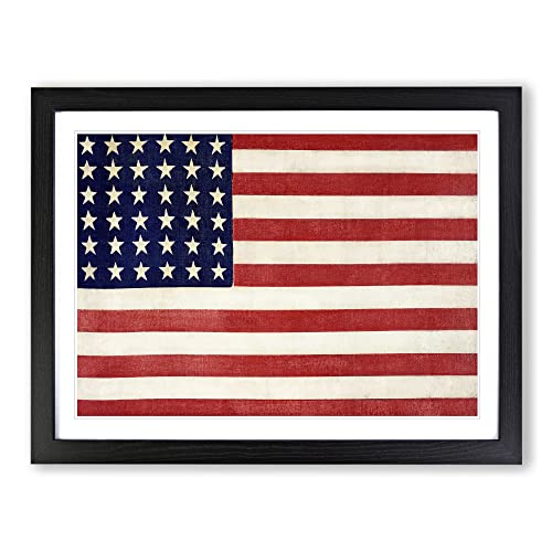 Thirty Six Star Flag Of The United States Of America Modern Art Framed Wall Art Print, Ready to Hang Picture for Living Room Bedroom Home Office Décor, Black A2 (64 x 46 cm)