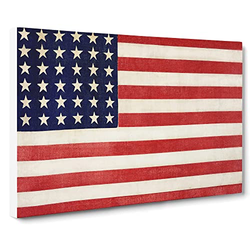 Thirty Six Star Flag Of The United States Of America Modern Art Canvas Wall Art Print Ready to Hang, Framed Picture for Living Room Bedroom Home Office Décor, 76x50 cm (30x20 Inch)