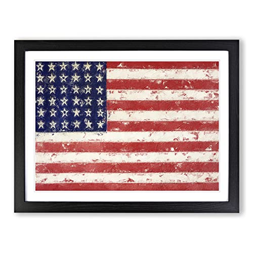 Flag Of The United States Of America Modern Framed Wall Art Print, Ready to Hang Picture for Living Room Bedroom Home Office Décor, Black A2 (64 x 46 cm)