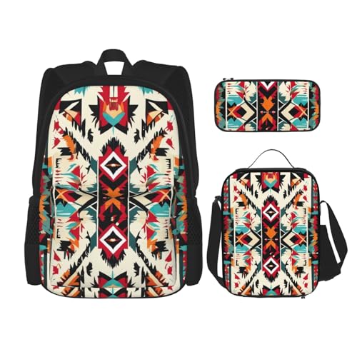 KAABNNT Native American Patterns Print 3-in-1 Waterproof Oxford Backpack Set | Lunch Box | Pencil Case | Work | Outdoor
