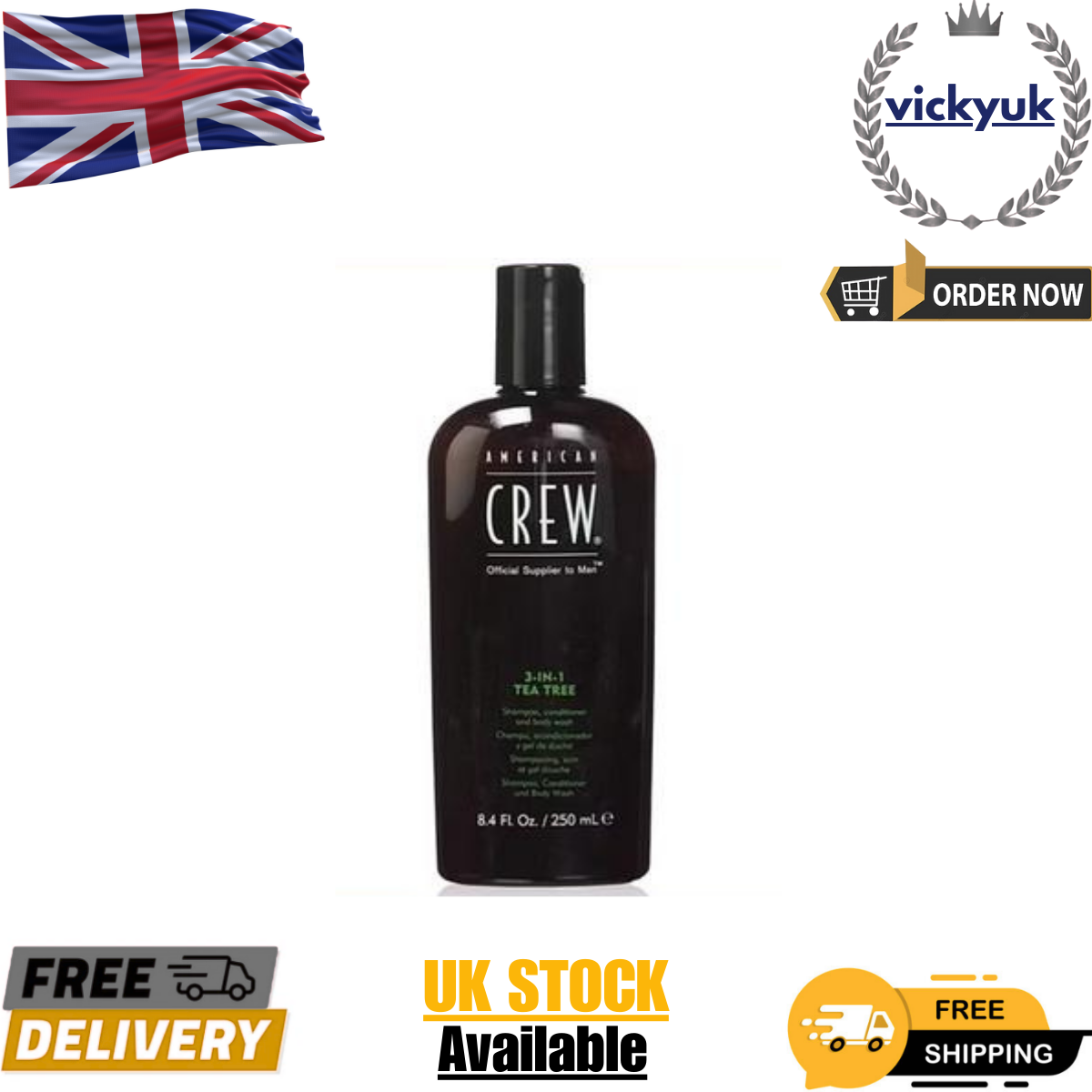 American Crew 3-in-1 Tea Tree Shampoo Conditioner Body Wash 250ml Hair & Body