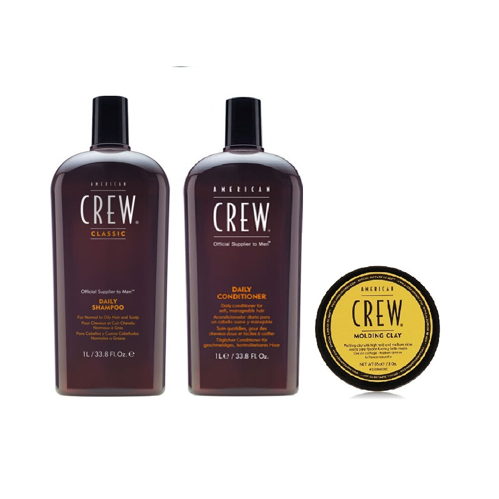 American Crew Daily Moisturizing Shampoo 1000ml, Conditioner 1000ml and Molding Clay 85ml