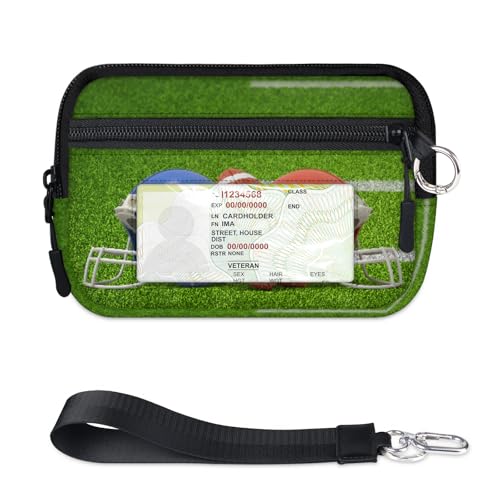 WowPrint American Football and Helmets Mini Zip Card Case for Women Men with ID Window Football Wallet Portable Lightweight Small Purses Zipper Coin Card Organizer Bag