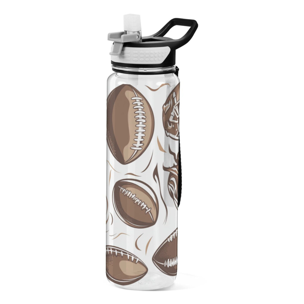 32oz Transparent Sports Water Bottle with Straw for Kids Adults Outdoor School Gym Fitness American Football and Helmets