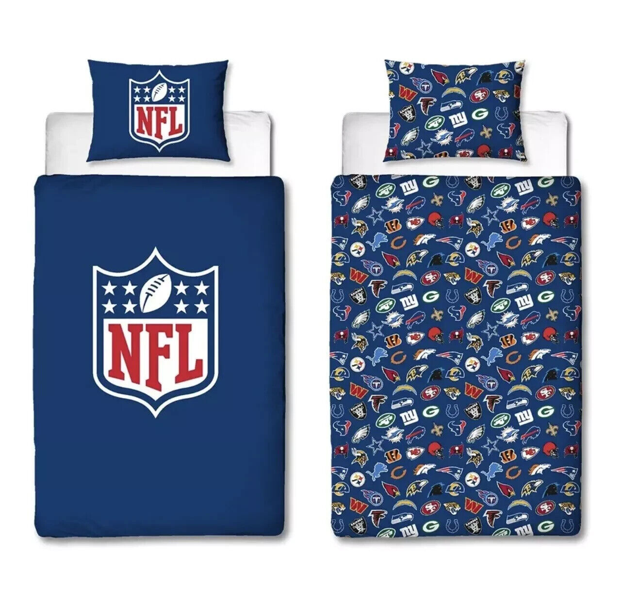 NFL 'Helmets' American Football Reversible Duvet Cover Bedding Set Blue Single