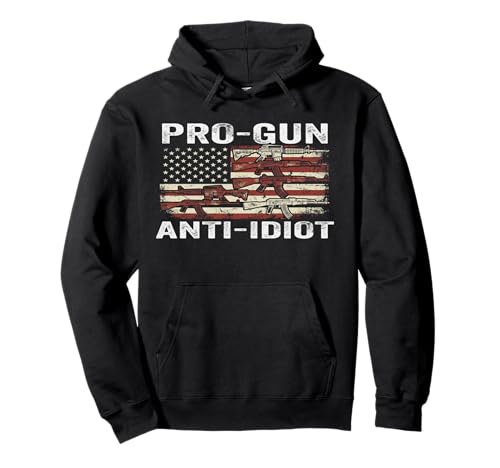 Pro Gun Anti Idiot American Flag Pullover Hoodie