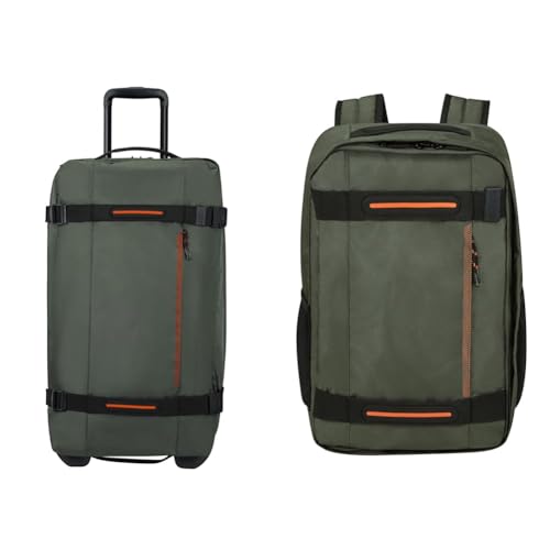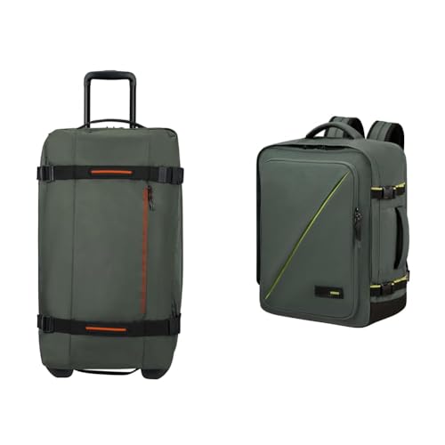 American Tourister Urban Track & Take2Cabin - Travel Bag with 2 Wheels, 68 cm, 84 L & Ryanair Cabin Bag, 25 x 20 x 40 cm, 24 L - Urban Adventure Set - Dark Khaki/Forest