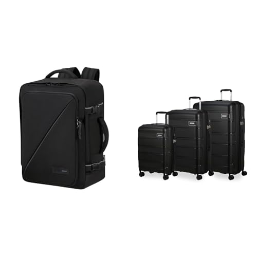American Tourister Skymax & Take2Cabin - Suitcase Set 3 Pieces & Ryanair Cabin Bag, 25 x 20 x 40 cm, 24 L - Skymax Complete Travel Set - Black